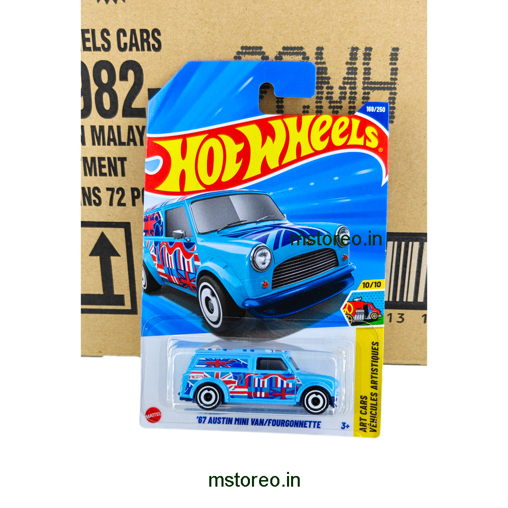 Shop the Hot Wheels ’67 Austin Mini Van (Fourgonnette) die-cast car, a classic British mini delivery van in 1:64 scale. Perfect for Hot Wheels collectors, vintage car lovers, and die-cast enthusiasts.