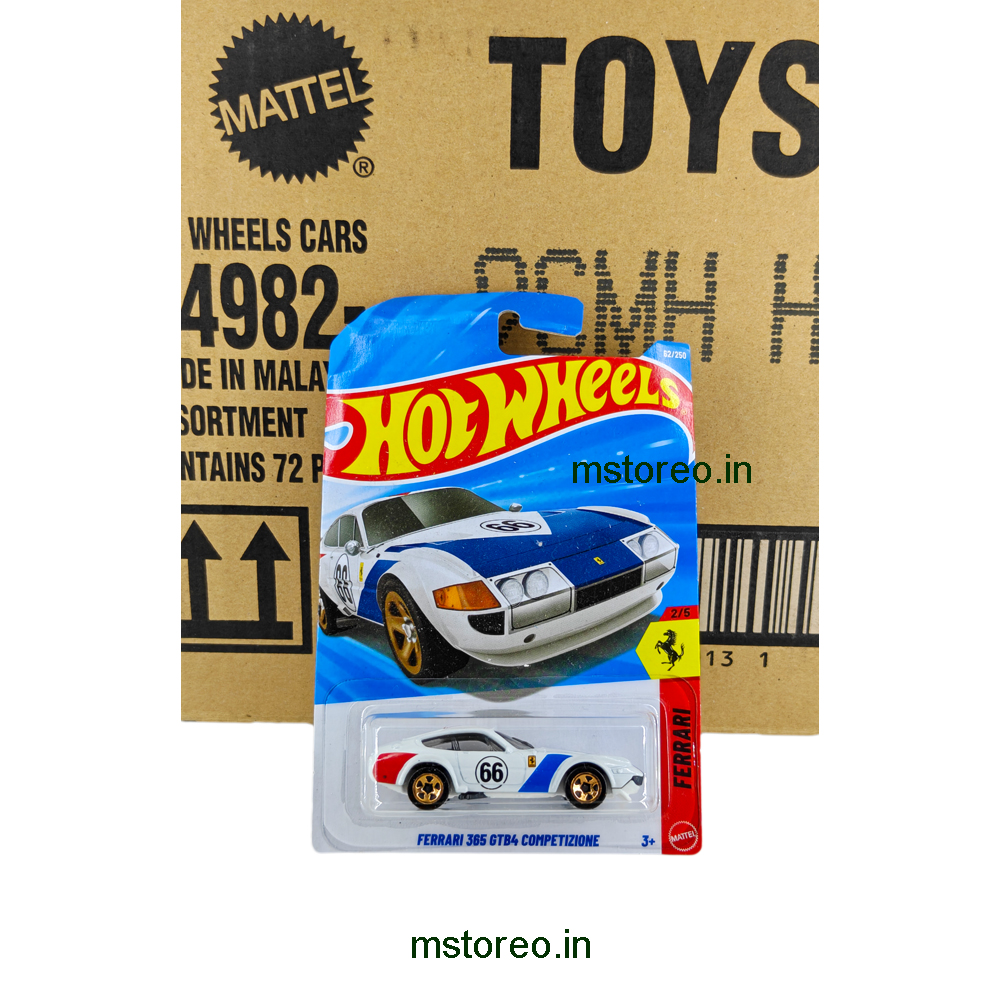 Buy the Hot Wheels Ferrari 365 GTB4 Competizione die-cast car, a legendary Ferrari Daytona race car in 1:64 scale. Perfect for Hot Wheels collectors, Ferrari fans, and motorsport enthusiasts.