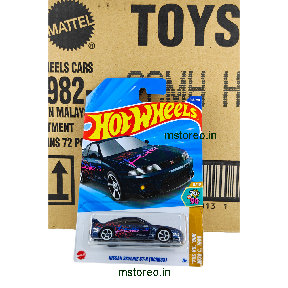 Buy Hot Wheels Nissan Skyline GT-R (BCNR33) 1:64 scale die-cast collectible. A legendary JDM sports car perfect for Hot Wheels collectors, Skyline fans, and diecast enthusiasts.