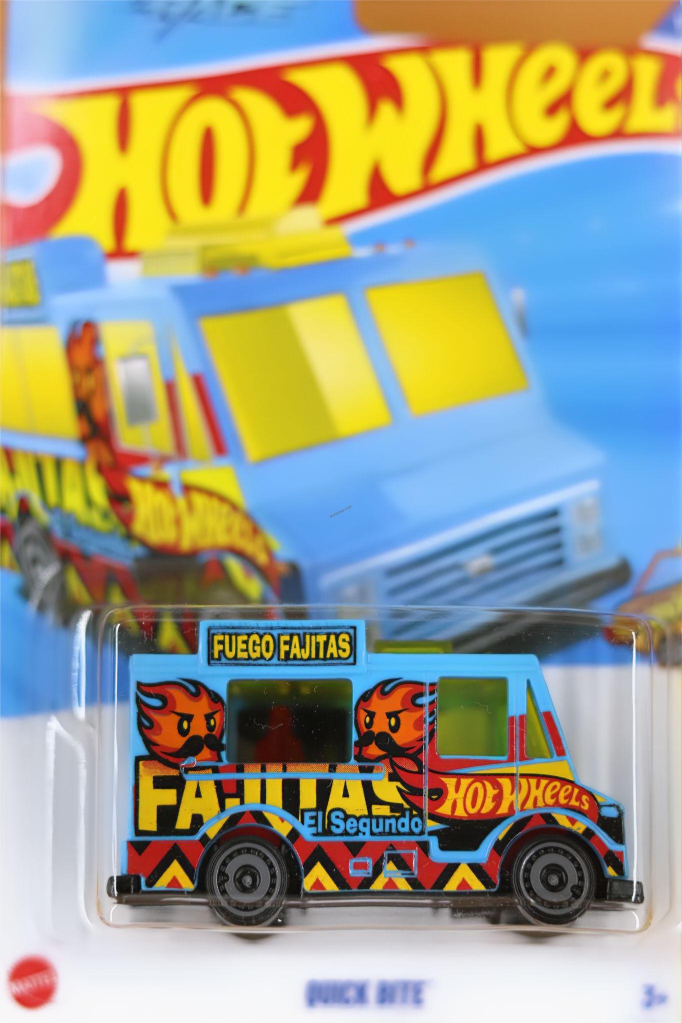 Snack-time meets speed with Hot Wheels Quick Bite! A burger-themed die-cast fantasy car from Mattel, perfect for collectors, kids, and novelty toy fans.