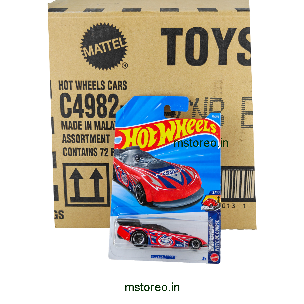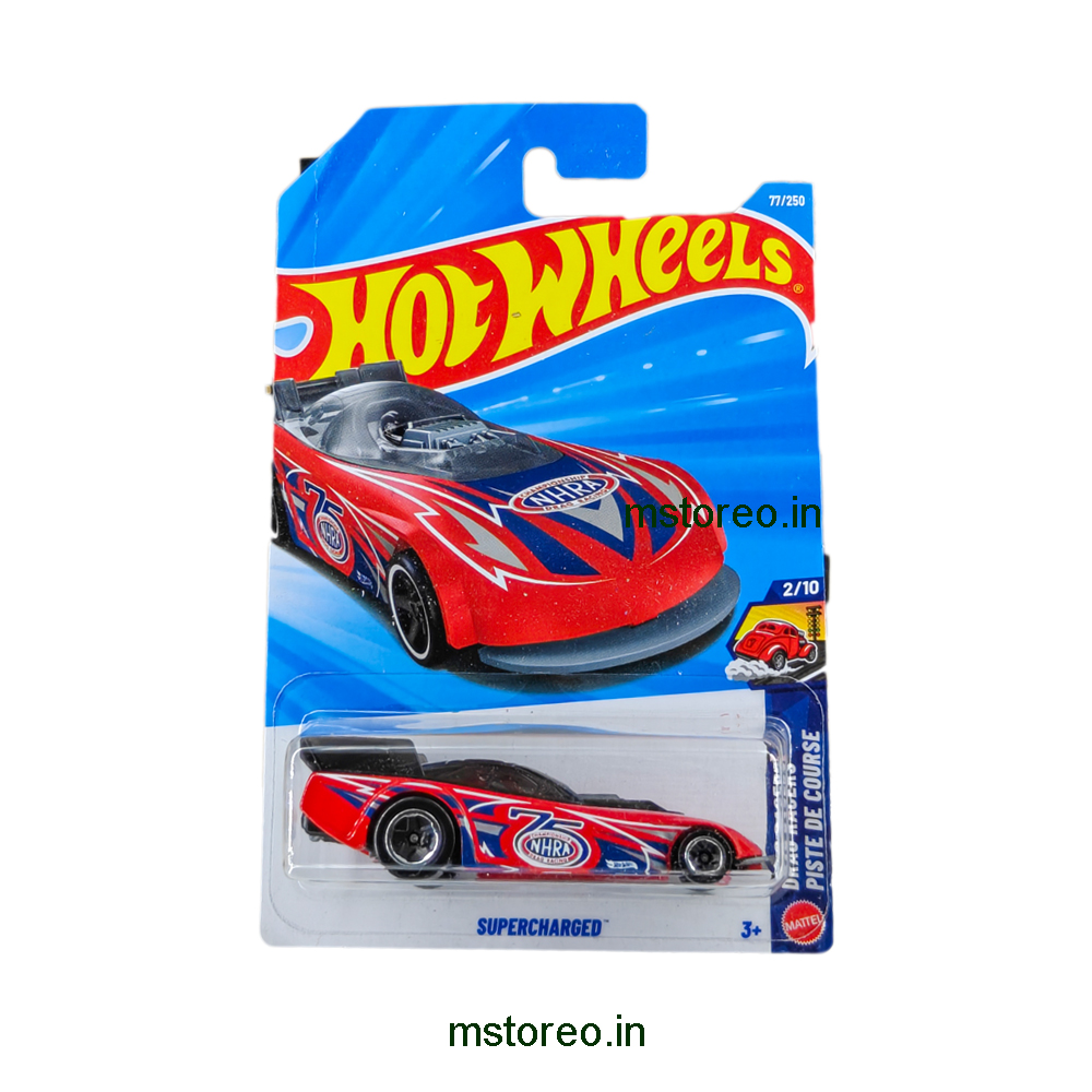 Buy Hot Wheels Supercharged 1:64 die-cast car featuring an aggressive design and supercharged engine styling. Perfect for collectors, Hot Wheels fans, and kids who love high-performance toy cars.