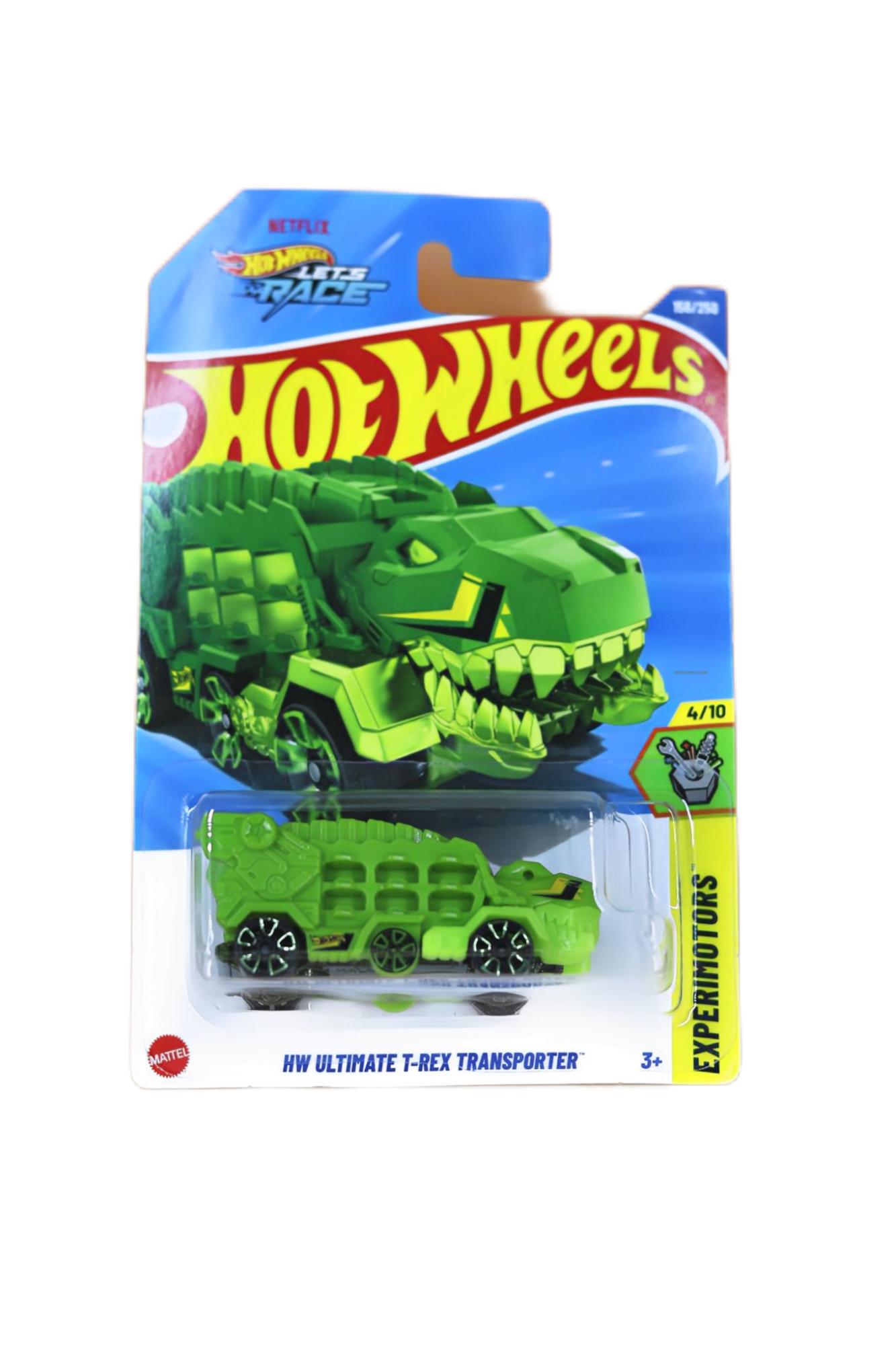 Unleash dino-sized action with the Hot Wheels HW Ultimate T-Rex Transporter! A massive dinosaur truck car carrier with storage and play features—perfect for kids and collectors.
